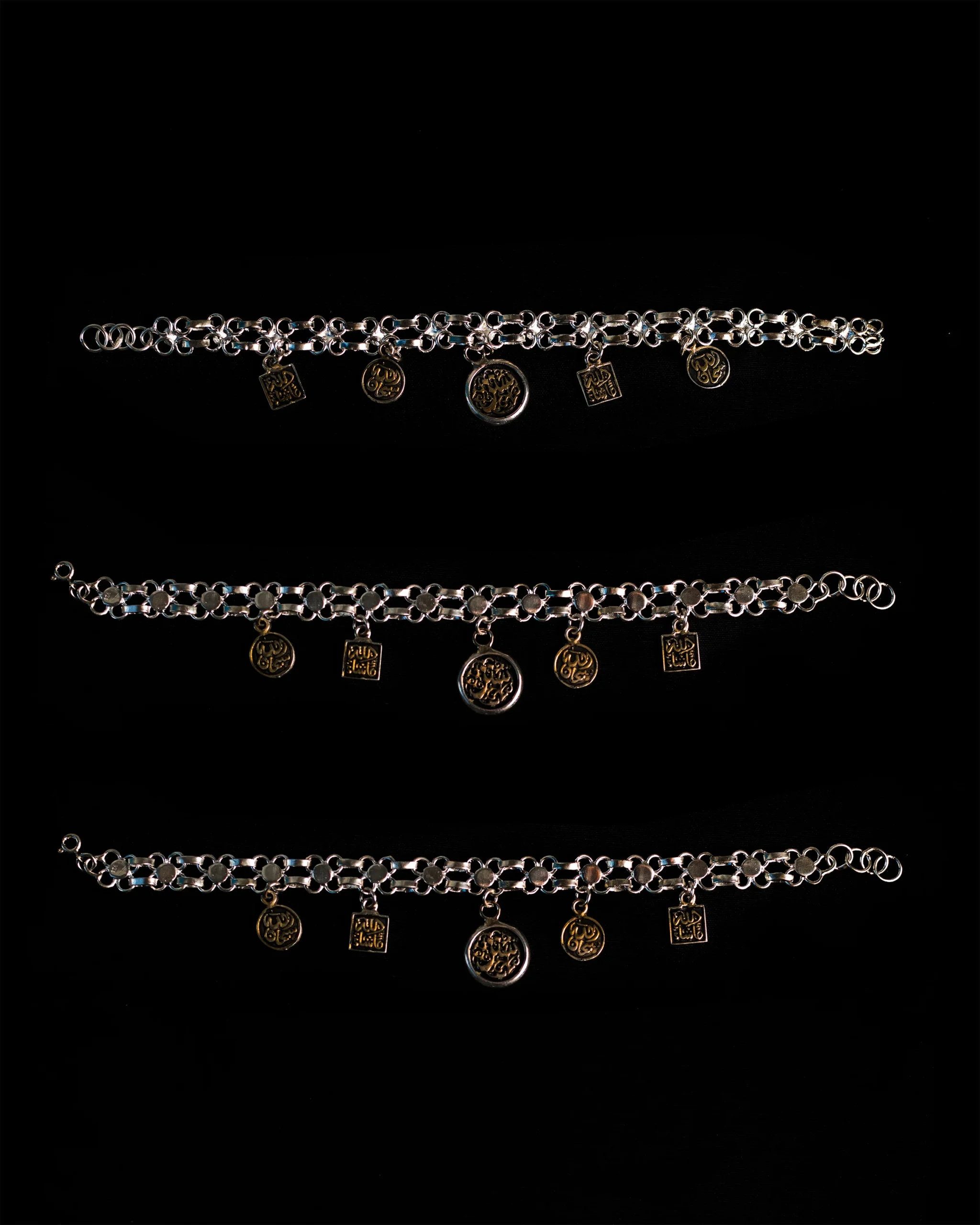 Step out in style with this charming anklet, handmade in Tunisia from 925 sterling silver and adorned with gold-accented Arabic calligraphy charms. Each piece is thoughtfully crafted in our small workshop, blending tradition with contemporary fashion. The adjustable chain ensures a perfect fit, making it an eye-catching addition to any look and a meaningful gift for someone special.